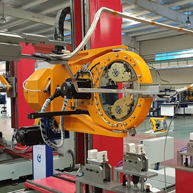 非接觸式3D示教系統(tǒng)為我公司最新研發(fā)。由一套尺寸僅為130*75*35mm的測量裝置組成,安裝于包帶機包帶頭上,配套程序內置于包帶機系統(tǒng)內。適用于我司不同型號的CNC及機器人包帶機使用。此示教系統(tǒng)的導入,結束了人工示教操作的歷史,從而改善了線示教精度的穩(wěn)定性,因此提高了包帶品質。
